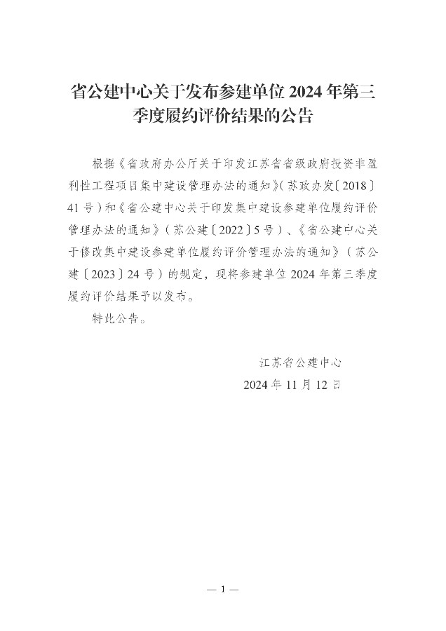 必威手机官网登录关于发布参建单位2024年第三季度履约评价结果的公告
