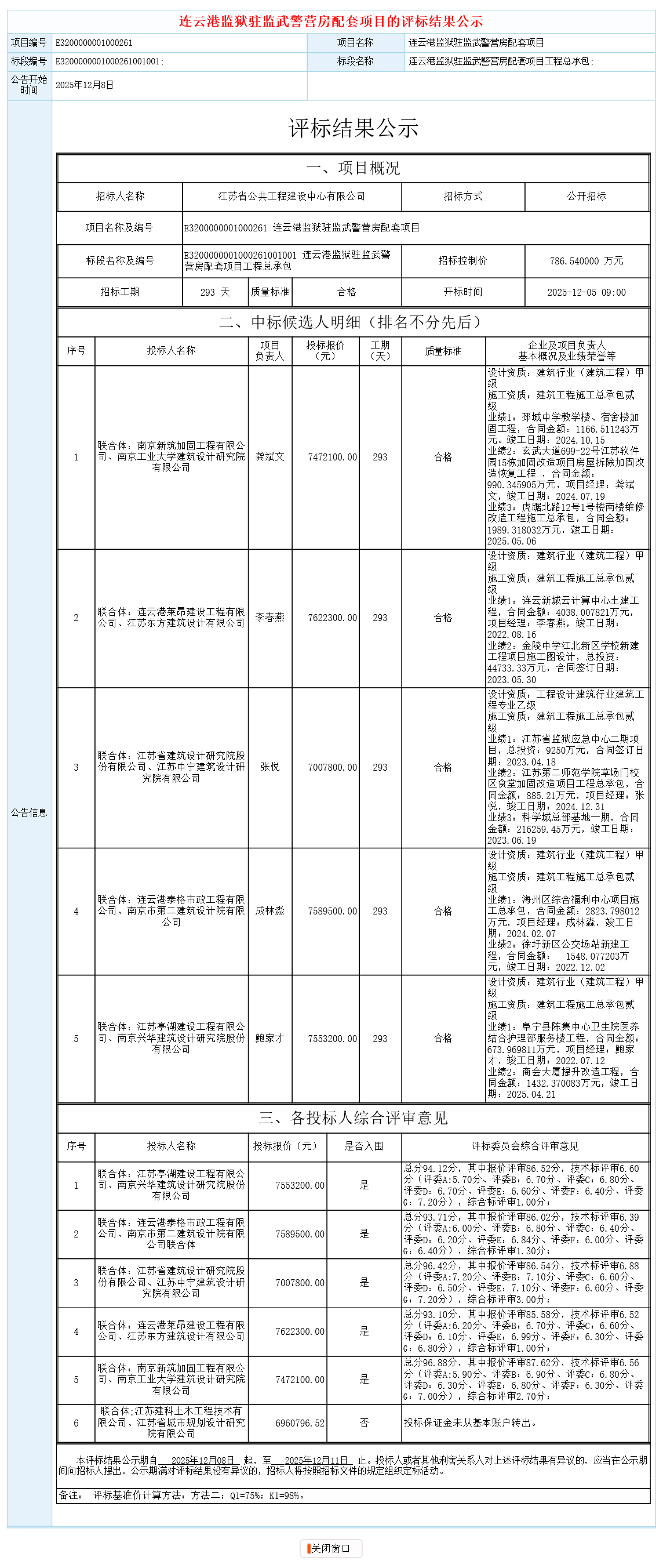 评标结果公示 | 连云港监狱驻监武警营房配套项目工程总承包